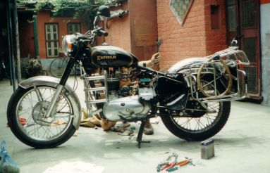 The Bullet is still the bike to have in India. "Ah, Enfield, very good motorcycle". We never had the heart to say that actually they weren't. I presume the exported models are better quality than the Indian ones. The design isn't too bad, it has lasted over 40 years almost unchanged. The worst thing about the bikes is the build quality, especially the electrics. I called my bike "Bubonic" because it's black and plagued with problems. The bikes are actually guaranteed for 6 months, however, this doesn't cover vibration or oil leaks. Our first free service cost about 20 quid. I would actually pay to keep an Indian mechanic off my bike so that was the last time it saw a dealer. About half the things that went wrong could be traced to the mechanic at the shop we bought them from, the other half to being badly put together in the factory. Nothing actually broke, it just needed adjusting, bolting or welding on again, or hitting with a hammer.